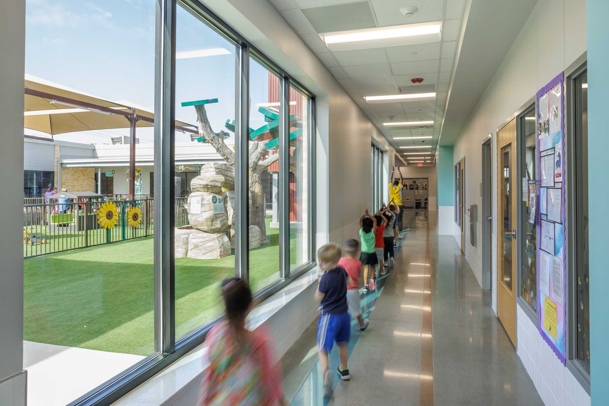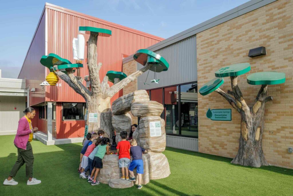 Del Valle Independent School District (ISD) is expanding its childcare program, giving staff reliable childcare while creating new learning experiences for young children. At the center of this effort is the new Central Child Development Center (CDC), the district’s largest CDC facility, designed in partnership with The Thinkery, a children’s museum in downtown Austin. This collaboration brings interactive, museum-style learning into the school environment, sparking children’s curiosity with hands-on exhibits and making early education more engaging and accessible.